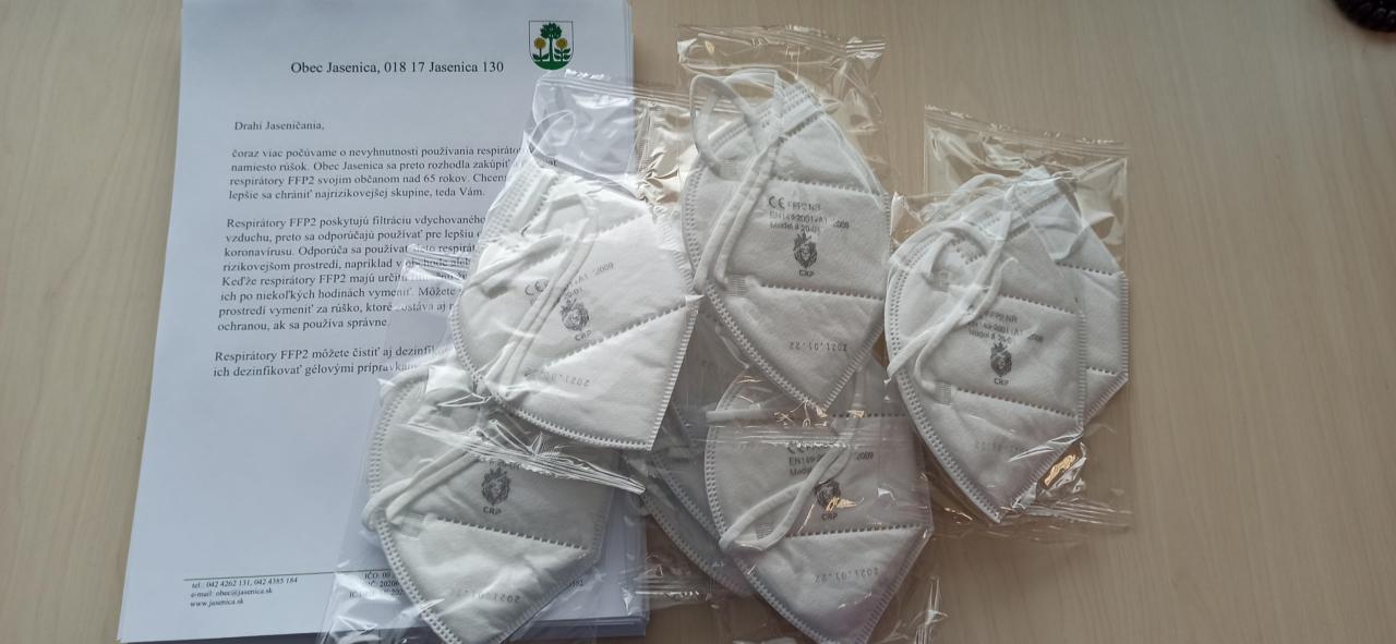 Každý občan Jasenice nad 65 rokov dostal dva kusy respirátorov FFP2 priamo do svojej poštovej schránky.